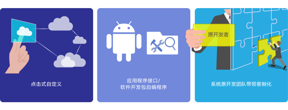 在不適用的情況下采用了錯誤的客製化方法不僅(jin) 需要花費大量的時間與(yu) 成本,甚至無法實現客製化的目標。我們(men) 提供以下三種高效且低成本的客製化方法,企業(ye) 可按需選擇符合適用於(yu) 實際需求的客製化方法: