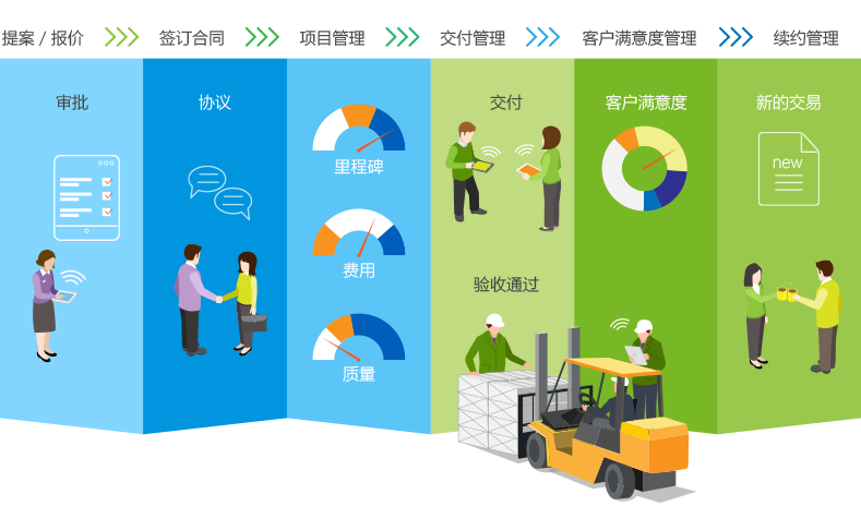 1)、調整項目管理方式,把目前項目管理流程和工作內(nei) 容無縫接入PPM係統平台,實現智能業(ye) 務項目管理新模式。其中,在qmchashi PPM上實現合同及項目從(cong) 提議到結束的整個(ge) 周期一體(ti) 化管理,通過報價(jia) 與(yu) 方案,合同與(yu) 項目執行,裏程碑完成情況與(yu) 服務水平協議監控,變更請求與(yu) 影響追蹤、成本、收入及利潤管理,收款/發票管理/加拿大pc网页版官网滿意度/續約管理等五大功能管理,實現合同與(yu) 項目的實施互聯互通。