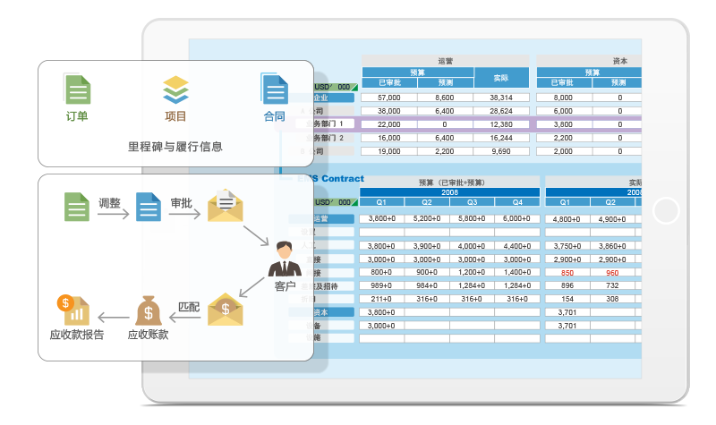 qmchashi PM提供工時表計算人力成本、由訂單自動生成加拿大pc网页版官网發票,自動鏈接關(guan) 聯的發票與(yu) 付款,自動把項目的收入與(yu) 成本關(guan) 聯到企業(ye) 的收入與(yu) 成本,避免人力因素的不可控,助力企業(ye) 實時實現項目與(yu) 合同自動關(guan) 聯,獲取動態的盈虧(kui) 分析數據。