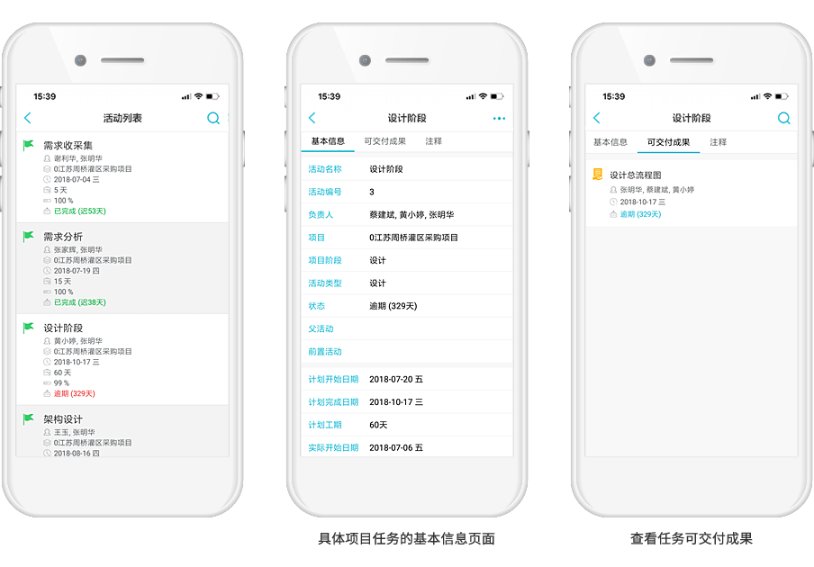 用戶可通過手機 PM 以項目、負責人或狀態來搜索係統中有權限查看的項目的任務,實時追蹤項目任務的進度,並可根據實際情況對任務信息(如階段、任務類型等)進行修改,即使在家辦公,也能隨時追蹤任務可交付成果的完成情況。