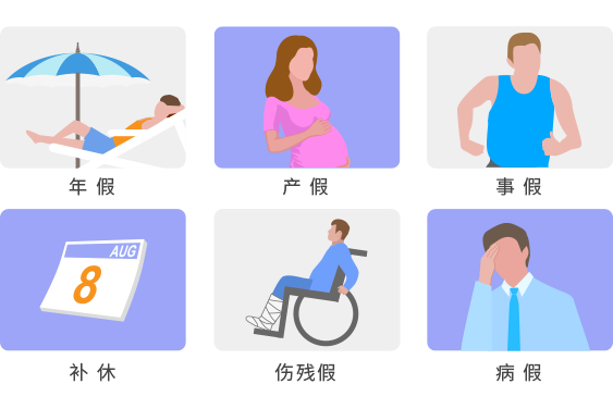- 按需設置每個員工的假期類型及其計算方式(例如帶薪年假,事假,病假,產假等)