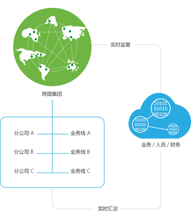 2) 總公司可實時監控到任何一間地區或下屬公司的業(ye) 務、人員(HR)及財務
