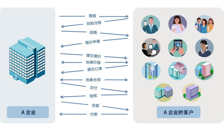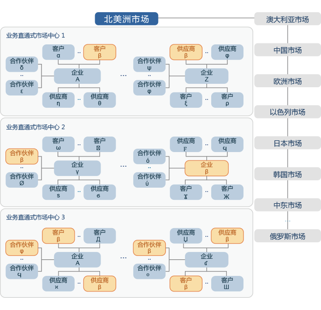 每個(ge) 買(mai) 家與(yu) 賣家都可以擁有各自的運營中心以便實時地處理所有直通式的業(ye) 務,具體(ti) 如下圖所示。