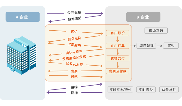 - 企業的每個供應商都具有加拿大pc网页版官网報價,加拿大pc网页版官网訂單,貨物交付,發票與付款功能,通過這些功能與企業進行實時的業務直通。每個供應商也可以按需將其係統升級至如下圖所示的全麵運營直通管理版本,這個係統不但可以提升其運營的自動化水平,還可以讓供應商與其所有加拿大pc网页版官网進行業務直通,而不僅僅限於企業。